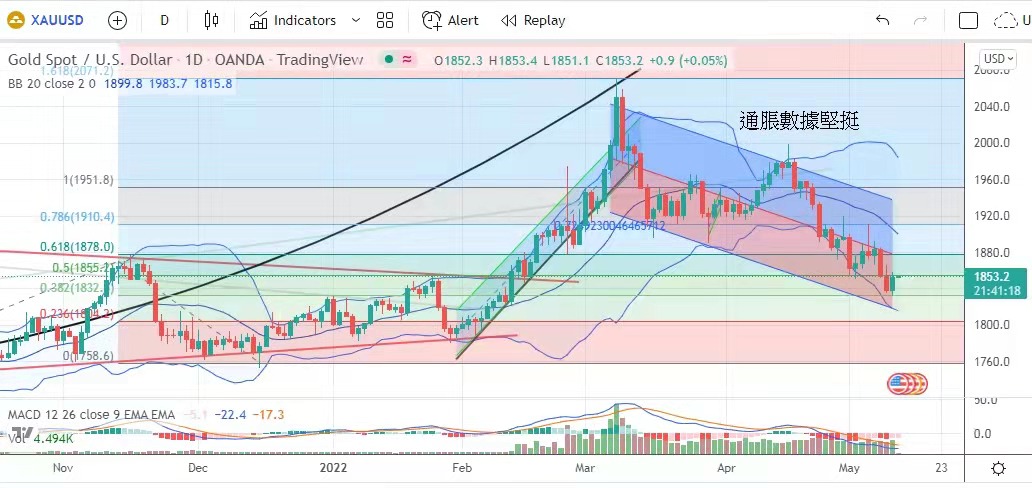 The sharp rise in international crude oil and natural gas prices, coupled with the fact that Bitcoin once fell below the $28,000 mark, stimulated investors' interest in gold's anti-inflation, while the April consumer price index announced last night rose by 8.3% year on year.