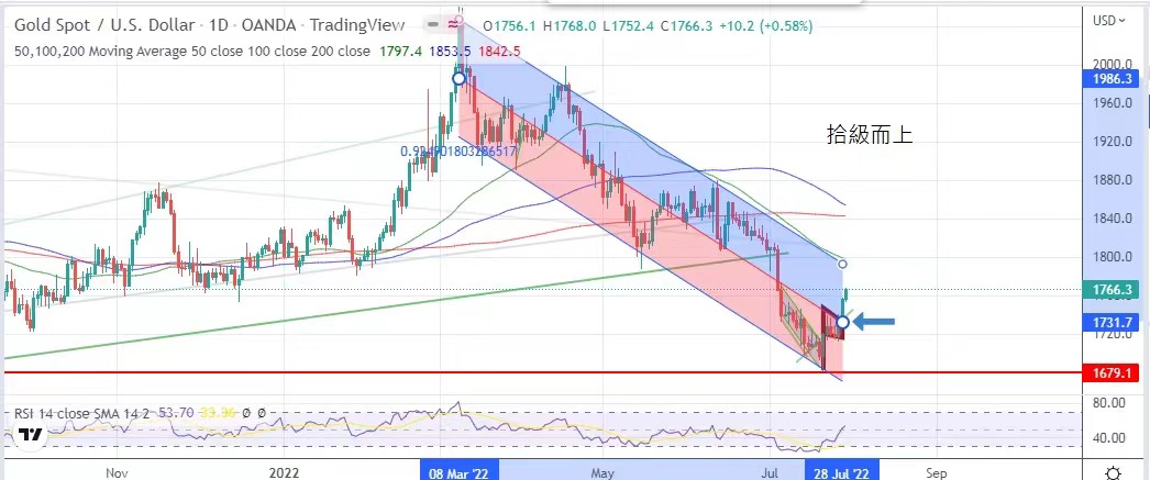 With the U.S. economy experiencing a technical recession and the U.S. dollar in a downturn, the price of gold is like a bath fire again, and there will still be many opportunities to keep going up this week. Today's suggested volatility ranges from $1,750 to $1,772.