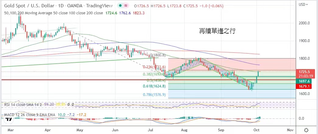 Yesterday, the price of gold rose above the 50-day average line, and the trend remained unfinished. Today's suggested volatility is $1,718 to $1,734.