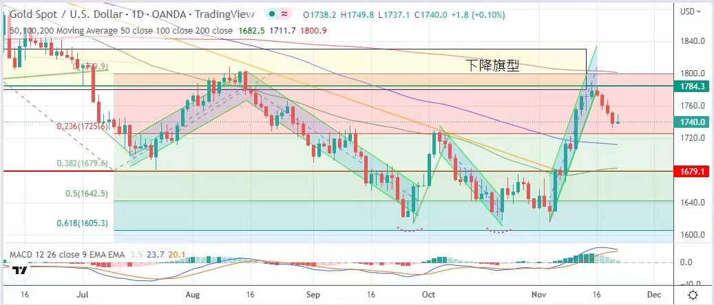 The U.S. dollar index and U.S. 10-year Treasury yields both fell, and the gold price closed slightly. The lowest gold price is $1737.1, the highest is $1749.8, and the most