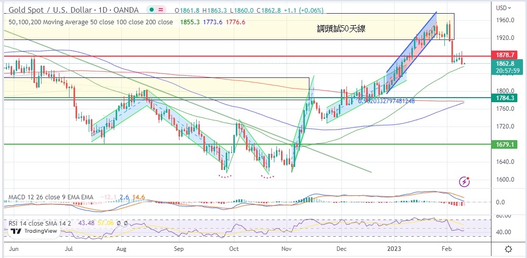 Dollars, but after the high position, profit-taking and short positions jointly pushed down the price of gold. The gold price is rejected, so we may have to try the support of the following 50-day moving average ($1,855).