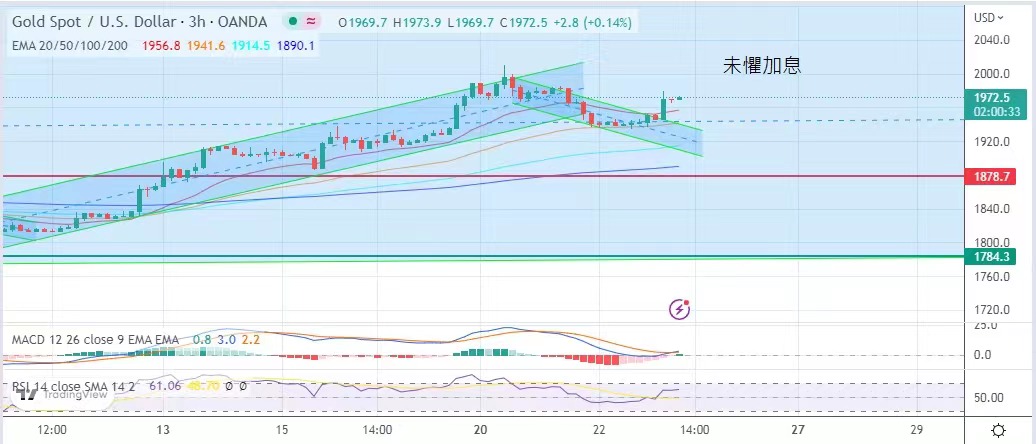 Raise interest rates; However, the yield of 10-year treasury bonds plummeted by 5% to 3.46%, indicating that the market believes that the Federal Reserve is not right, and the gold price seems to find support between $1,936.