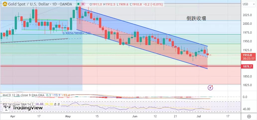 The intention of the Reserve Bank to raise interest rates; The US dollar index rebounded rapidly, and the gold market fell. The highest price of gold was 1927.7 yuan, the lowest was 1902.7 dollars, and finally it was 1911 dollars.