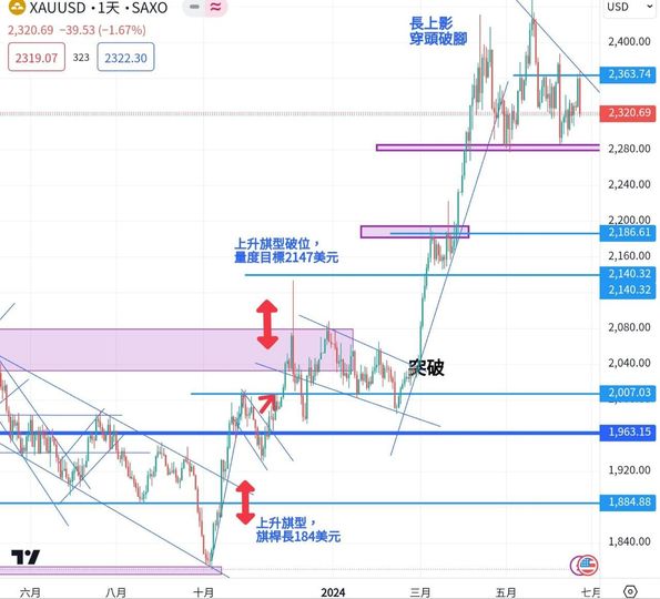 Retail sales at the beginning of the week were still lower than expected, and the market continued to expect to cut interest rates more than once, thus supporting the trend at the beginning of the Golden Week. Most of the time, gold prices stabilized, but there was a big reversal on Friday night. After reaching the weekly high of 2,368.72, it was unsustainable. At night, the PMI index released by the United States was better than expected, and both manufacturing and service industries were above the rising and falling boundary of 50. If the American economy did not land, there would be less interest rate cuts. Continued high interest rates for a long time increased the cost of gold holders, and the price of gold plummeted, falling below the opening price at the beginning of the week and falling by $11.64 for the whole week.