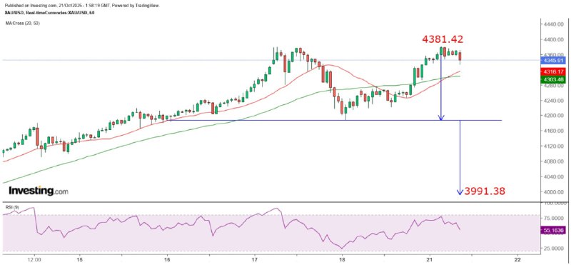 "Gold Price Hourly Chart Shows a Large Double Top" 21/10/2025 9:58 Completed