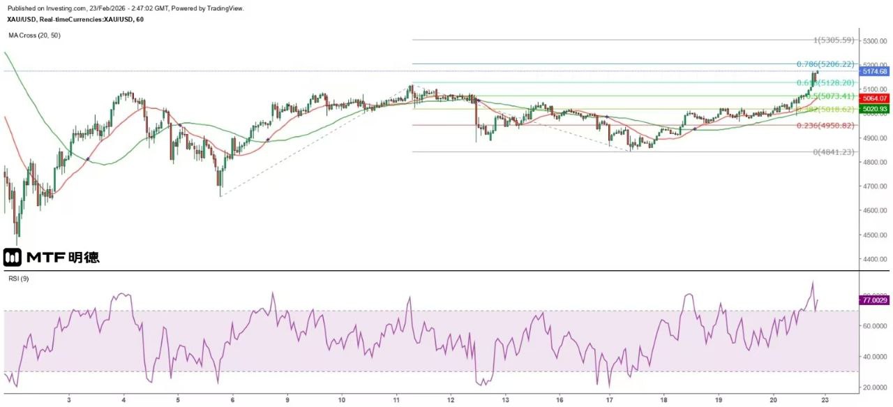 On the other hand, if the Fibonacci extension line is used to measure the movement since February 2nd and the amplitude reaches 100%, the gold price could reach $5,305.59. In other words, there is a possibility that the gold price will break through $5,260 and challenge the $5,300 mark before a significant adjustment occurs. It is expected that the possibility of breaking through $5,200 within the day is relatively high, and $5,210 is expected to be the first important resistance level. If this level is broken, it is not impossible for the price to rise to $5,260. After all, a daily fluctuation of more than $100 in the gold price is not uncommon. However, from a short-term perspective, today is exactly the day when the gold price peaks. Investors who chase the gold price at a high level should also be mentally prepared for a sudden drop at any time.