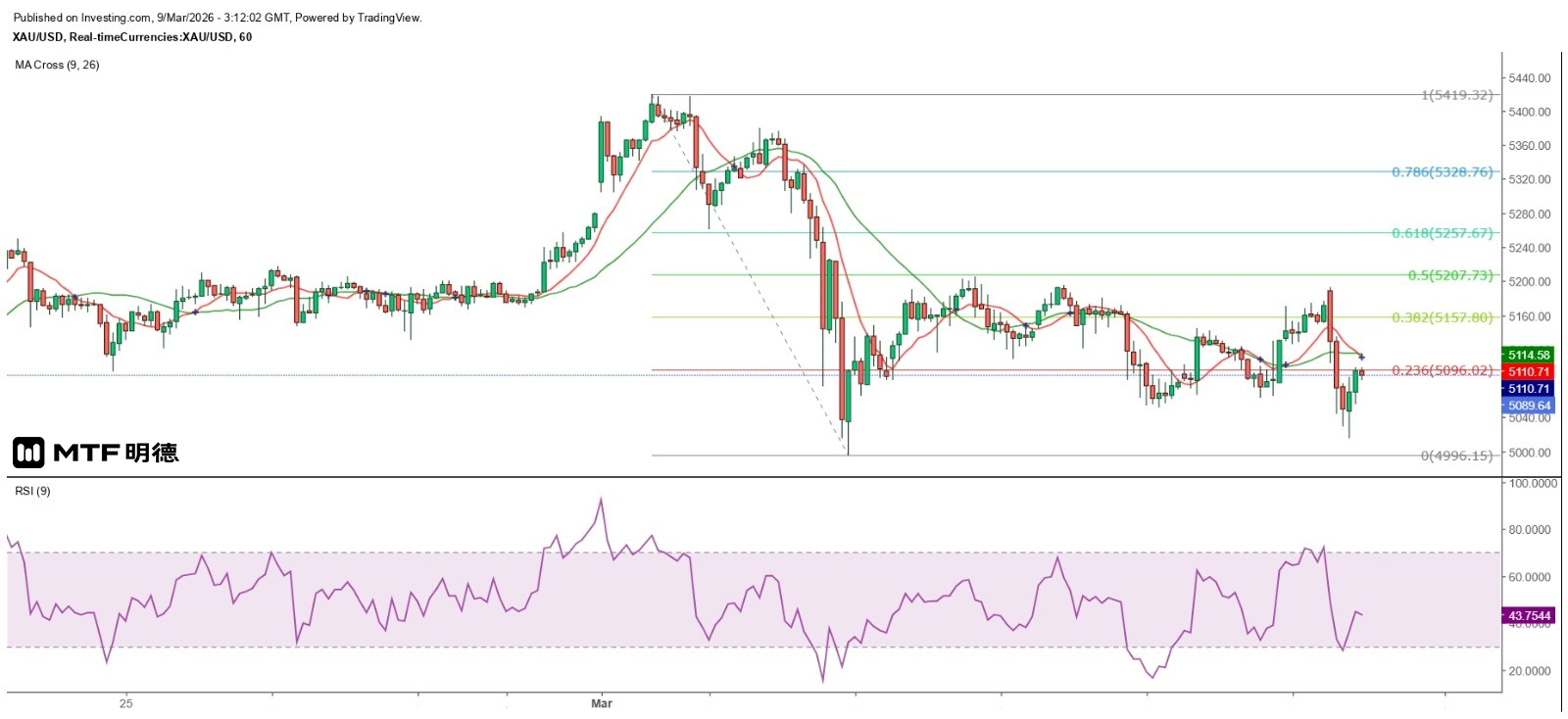 Gold and oil prices have always moved in tandem. Rising oil prices drive up inflation, which supports the rise in gold prices. Currently, the conflict between the US and Iran is ongoing, and the US non-farm payroll jobs decreased in February, raising market expectations for the Federal Reserve to cut interest rates. It is impossible for the Fed to raise interest rates due to the sharp increase in oil prices. Therefore, gold prices have the potential to rise significantly. From the hourly chart, the large double bottom of gold prices has not been broken, and the neckline remains at $5,205.91. This morning, gold prices approached $5,200 but did not break through. It remains to be seen how major players will use market information to break through this level. The Federal Reserve will hold a two-day interest rate meeting next Tuesday. As the authorities are currently more concerned about the performance of the job market than inflation, it is expected that even if the Fed does not cut interest rates next week, it will express its concern about the deterioration of the job market. This could very well serve as an excuse for gold prices to break through $5,200.