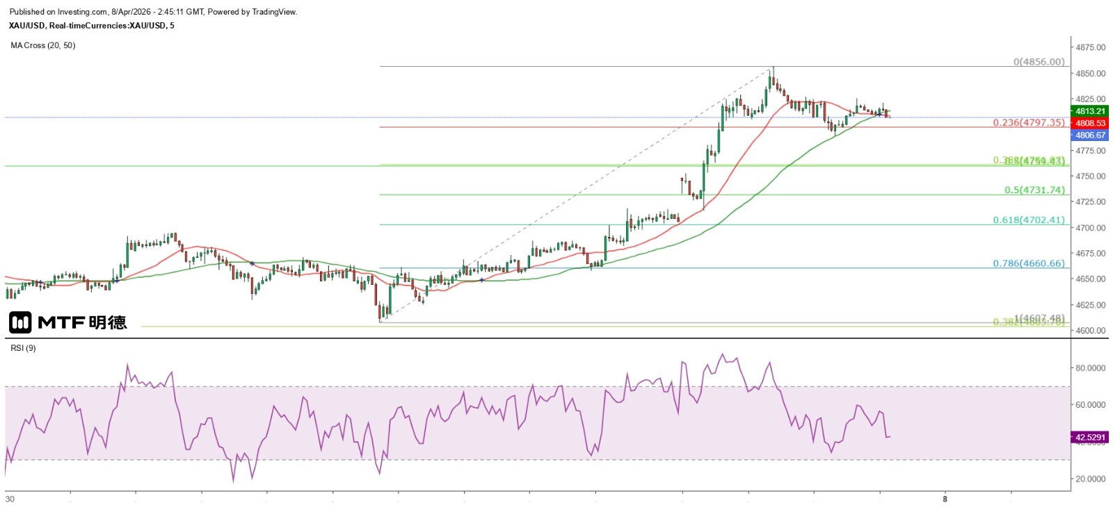Regarding the gold price, first of all, the spot gold price has risen back above $4,800 and has broken through the 45-degree angle of Gann at $4,810. The next major resistance level remains at $4,960. Will the gold price take advantage of the temporary ceasefire to challenge $5,000 and then fall sharply again due to the breakdown of the US-Iran negotiations? It is impossible to say so just based on the point of "accepting Iran's enrichment of uranium". If the gold price really rises to $4,960 at that time, it will be a good time to sell. In the short term, the gold price is expected to fluctuate between the 20SMA ($4,696) and 50SMA ($4,918) on the daily chart. In terms of the intraday trend, the 50SMA ($4,811) on the 5-minute chart is extremely crucial. Once it is broken, the gold price is expected to decline further, with the first important support at $4,731.