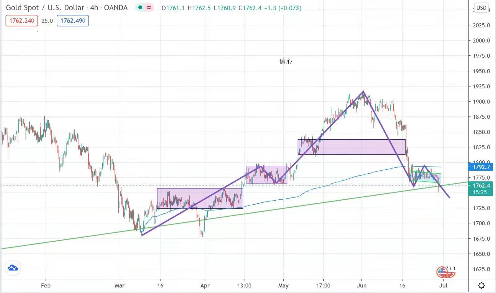 Although it rebounded to close at $1761, the trend is still dangerous! The non-farm payrolls report was released on Friday, but there will be a small non-farm payrolls debut tonight. The market expects that the non-farm payrolls in the United States will increase by 600,000 in June.