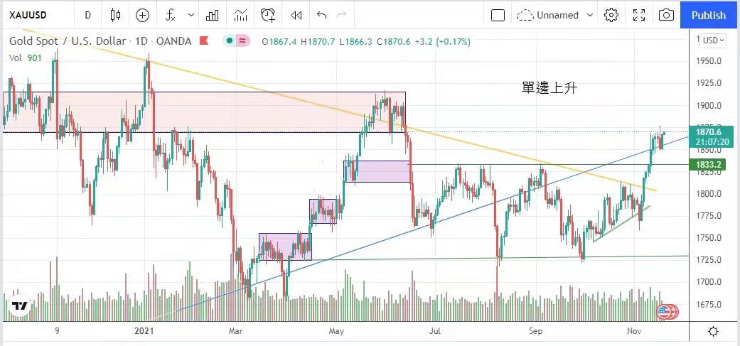 It has dropped from the high point since July 2020, causing more funds to flow into the gold market to avoid risks. After two days' adjustment, the price of gold will try again to reach this week's high. Today's suggested volatility ranges from $1863 to $1877.