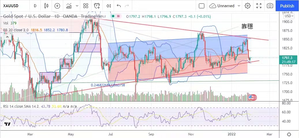After last week's cut of nearly $60 from a high level, the price of gold stabilized yesterday. The United States held talks with Russia to discuss the changes in the situation in Eastern Europe, and the temporary results were unknown, which became a risk factor.