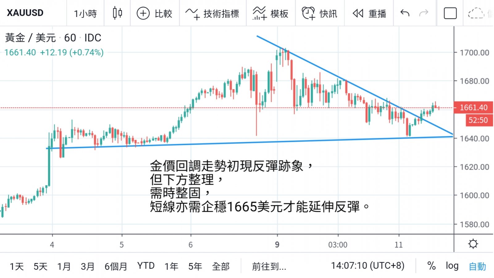 但相信低位可望开始整固,1650附近位置持续有买盘支持反弹,但上方需小心未能企稳1665难以延伸反弹空间,金价可逢低吸纳,