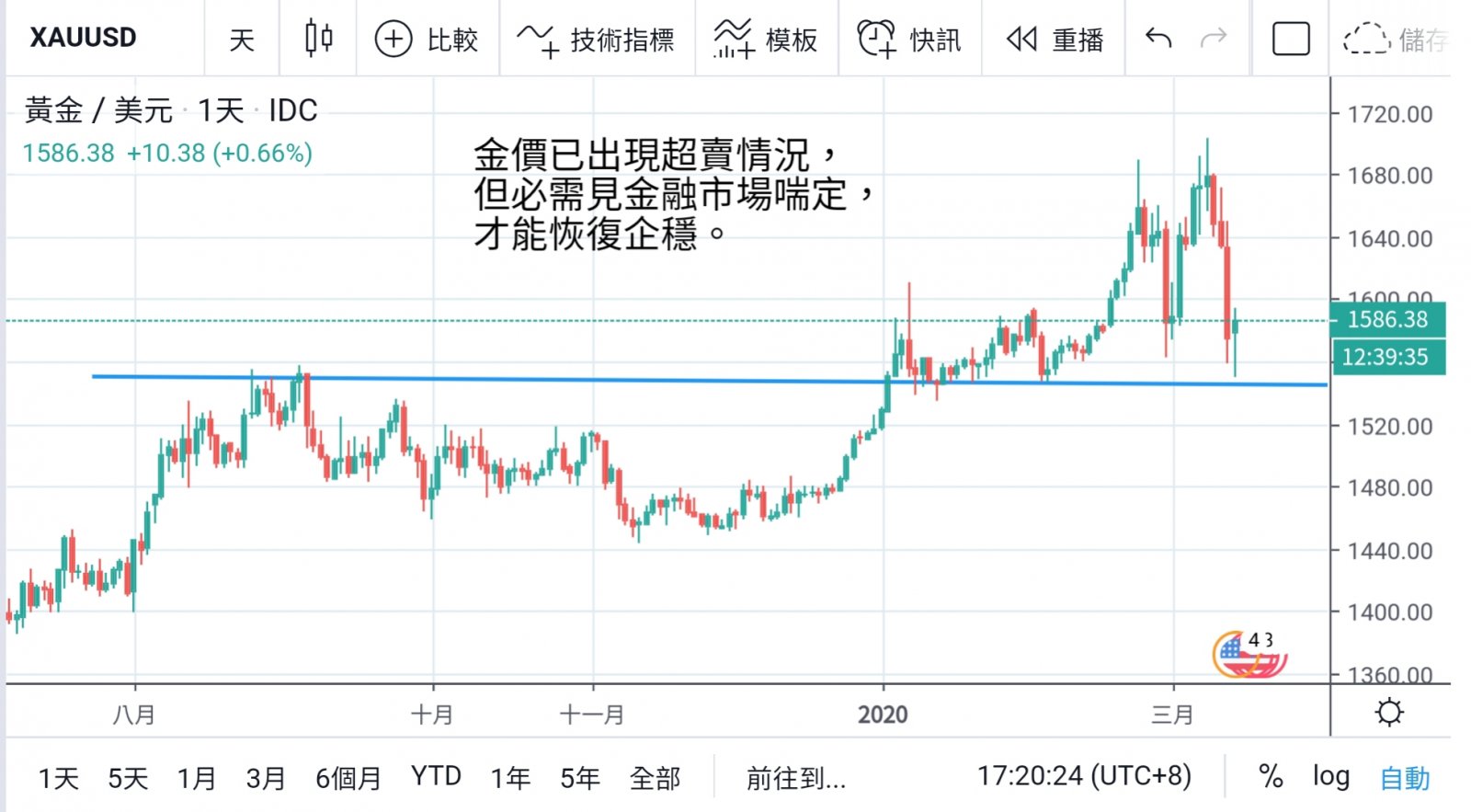 虽然致力于救市,但市场信心未恢复,欧美股市继续暴挫,美股并再度触发溶断基制,市场危机亦波及黄金市场。