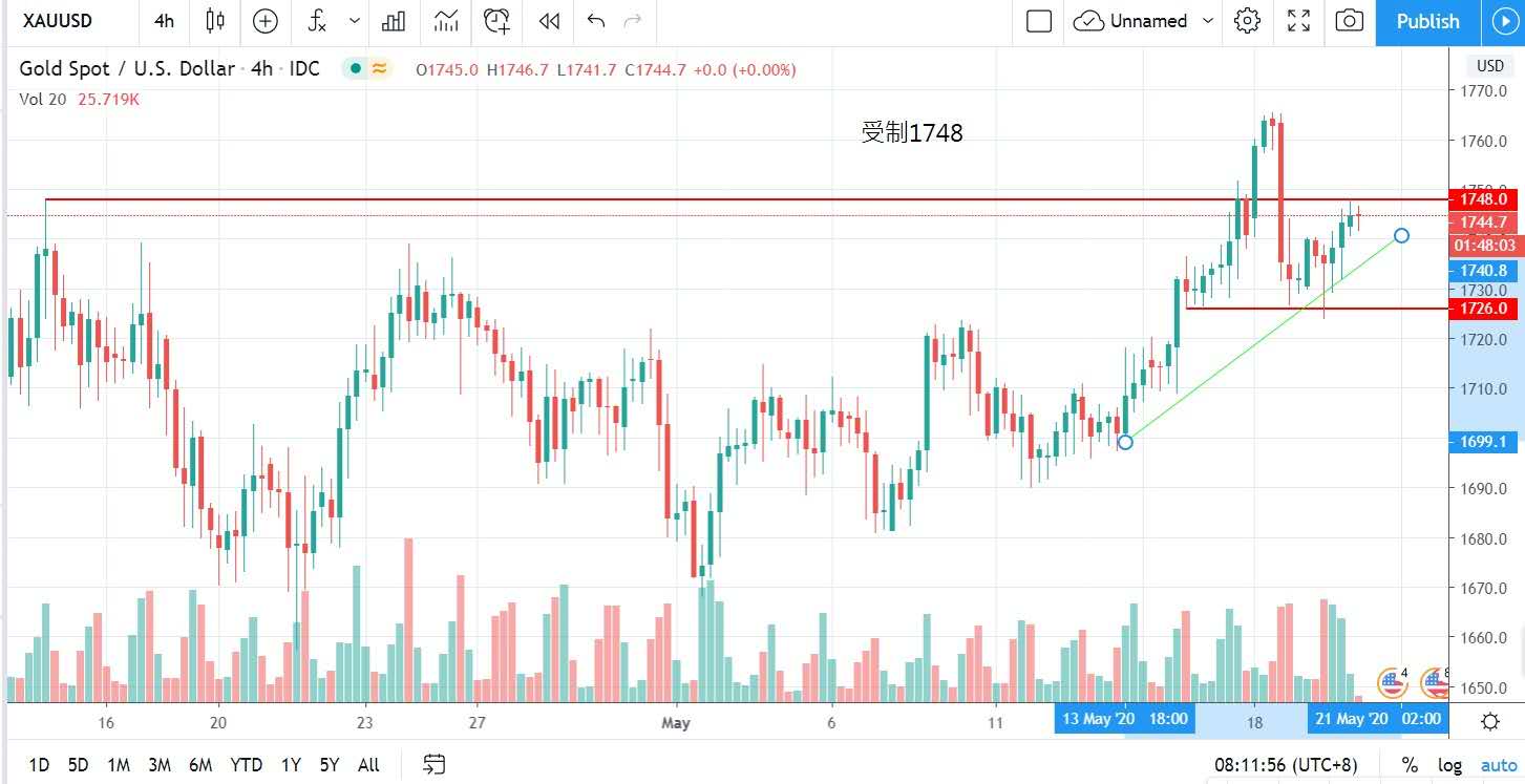 走势仍受制于4月所创的1748,但1726明显得到支持。