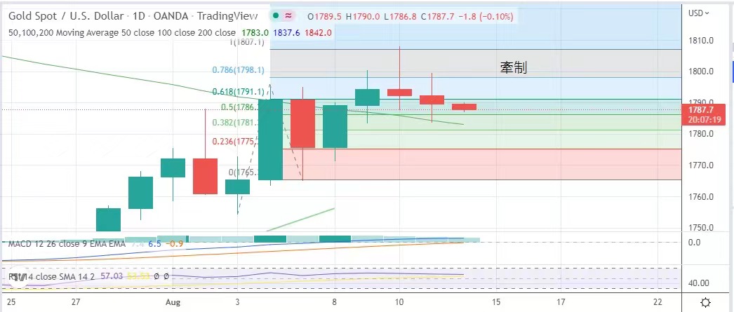 段曾跌至1783.6美元。在周三公布的消费者价格指数显示美国通胀似乎有见顶回落的迹象,美国昨日公布的七月份生产者物价指数,