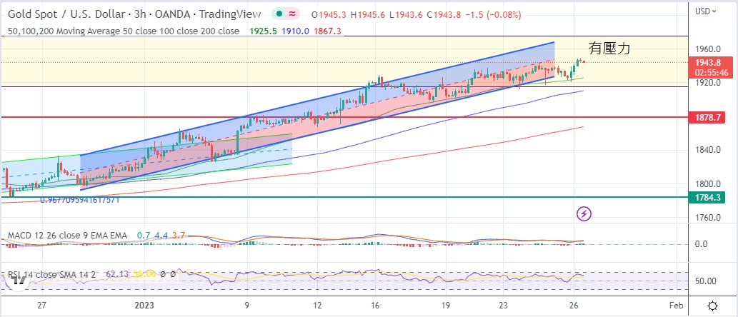 金市仍在震荡之中,走势上再创本年高位,同时亦慢慢将支持位置上移。美元昨日尝试反扑,空头乘势做低金市,金价又一度跌穿1920美元,最低见1919.9美元,之后欧洲央行委员放鹰,加上加拿大央行加息,美元指数急挫近101.6位置,多头乘胜追击,一举收复失地,金价最高见1948.1美元,最终以1946.9美元收市,升9美元。