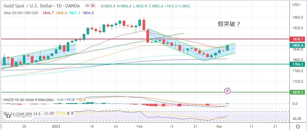 %,但显然投资者在陆续消化这个加息幅度,金价触底反弹,金价上周最低见1804.7美元,最高曾见1856.4美元,