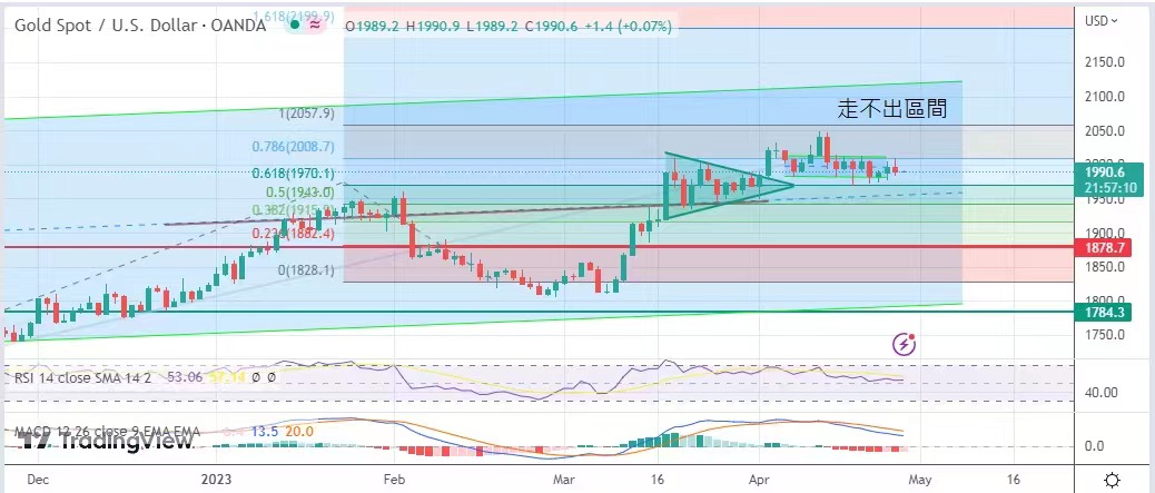 仍走不出在1970至2020之间的震荡区域。今日维持昨日建议波幅于1980美元至2005美元。
