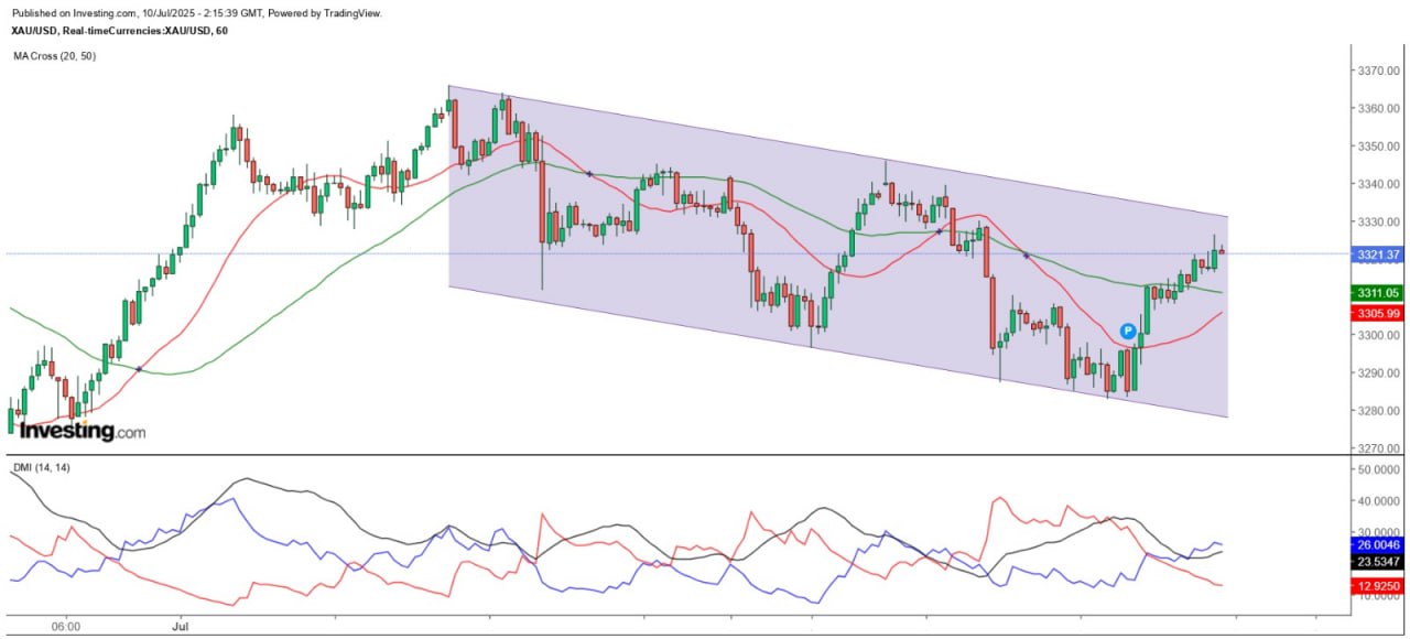 昨天金价失守3300美元后,并未如预期般直泻至3258美元,反而在3280美元站稳后持续回升,在今天亚洲市早段更重返3325美元以上,惟从小时图所见,金价暂仍处于平衡下降通道,能否向上突破有待观察。从日线图所见,金价本周二以穿头破脚跌穿50日SMA(3323.6)后,昨天反弹仍未能重返该线之上收市,反映50日SMA仍为重要阻力,今天在亚洲市早段仍在50日SMA附近争持,故后市必须收高于3346美元,才可考虑重新部署好仓。