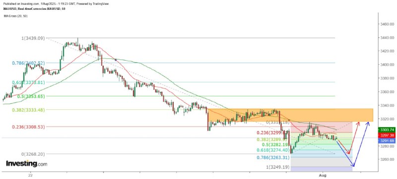 不过亦要留意,金价或下试前低3268美元后即见支持,即使轻微试穿该位亦有可能呈双底反弹,故在金价跌至3268至3249美元水平,投资者时宜留意小时图的转势讯号。暂时判断,金价今天将会终止7月23日以来的跌势,下周再次展开反弹浪,以目前计算,期间料在3315及3334美元遇到阻力,20及50日SMA则视为终极上升目标,其后再度转跌。