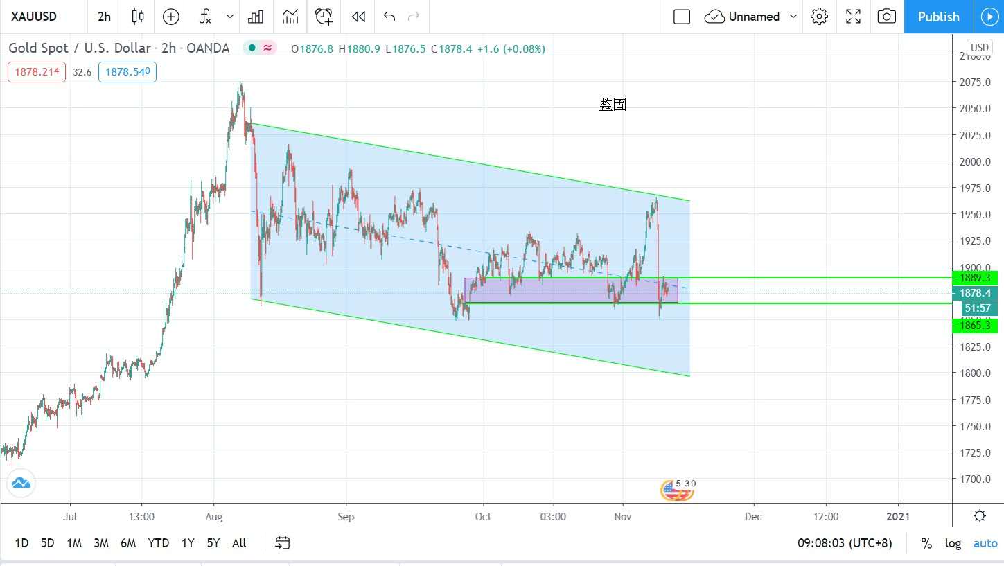 金价昨日反弹,市场憧憬美国将推在12月推出新财政及货币刺激措施,为金价经上日急泻后带来支持,金价最高见每盎司1890美元,最后收市价为每盎司1877美元,