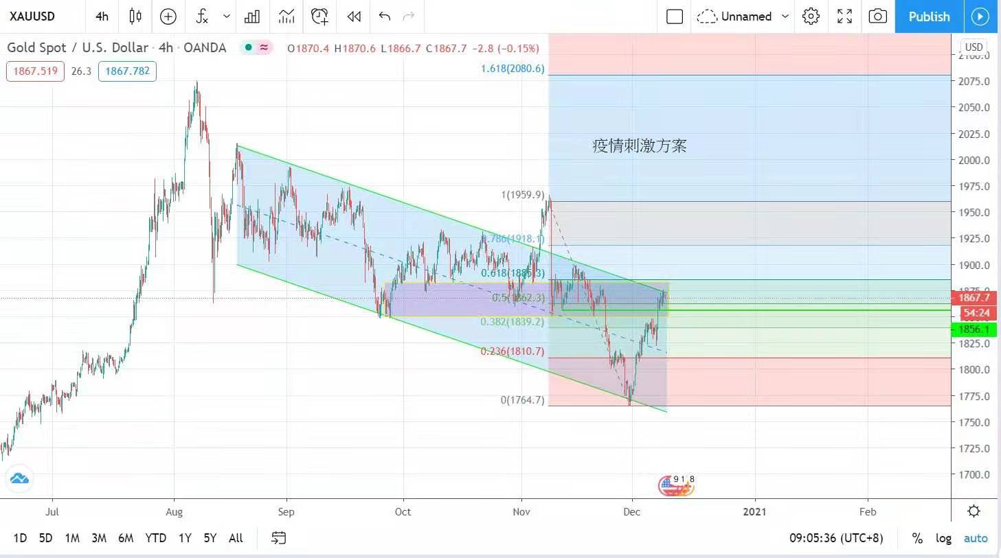 美國大規模的後疫情經濟刺激方案有望推出,金價將發揮其抗通脹及抗貨幣貶值的特性。今日金價可能振盪,主要波幅1856至1878美元。
