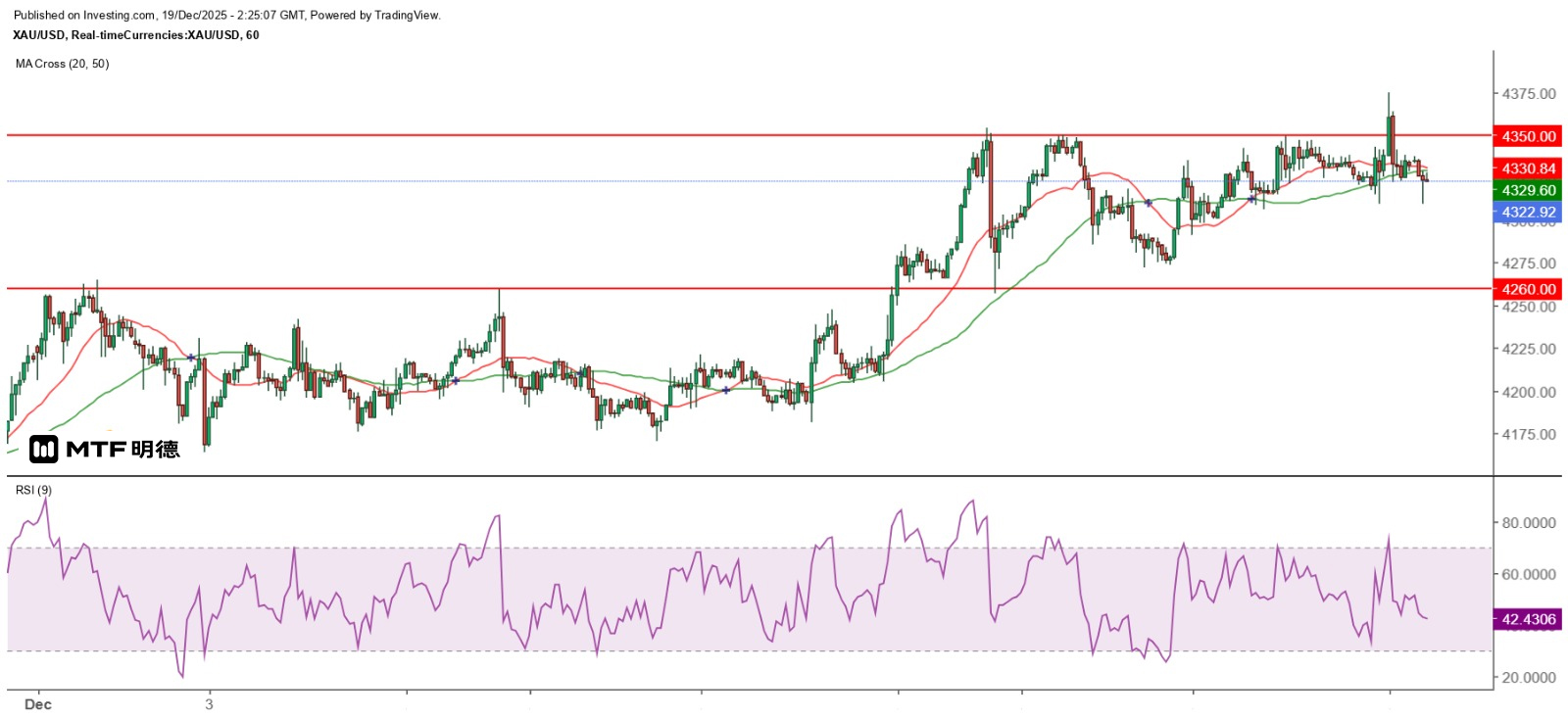 《金价呈大型双顶后市堪忧》19/12/2025 10:23 完稿