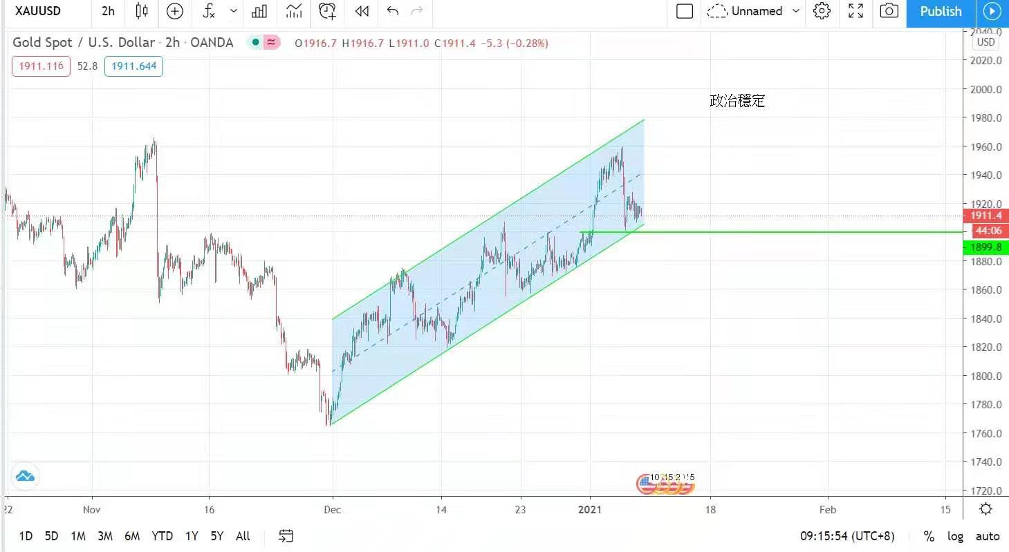 拜登政府在未来四年将全面控制白宫及国会参众两院,市场预期新政府会推出更大规模的财政刺激计划,原有利金价走势,但政治稳定的因数令美元即时从低位反弹,导致昨日金价倒头下跌;