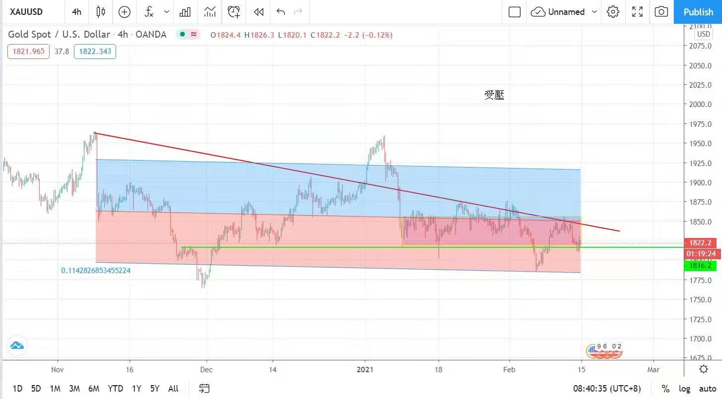 金价表现疲弱,疫情放缓令股市大升,黄金吸引力稍减,加上美元指数近日止跌回升,对金价在某程度造成压力,但黄金始终是抗通胀的投资工具之一,在低息环境及无限量宽之下,仍必水涨船高,在美国收水前应仍有表现。预料金价将在1800至1840之间整固,再图突破,今日建议波幅在1816至1831美元之间。