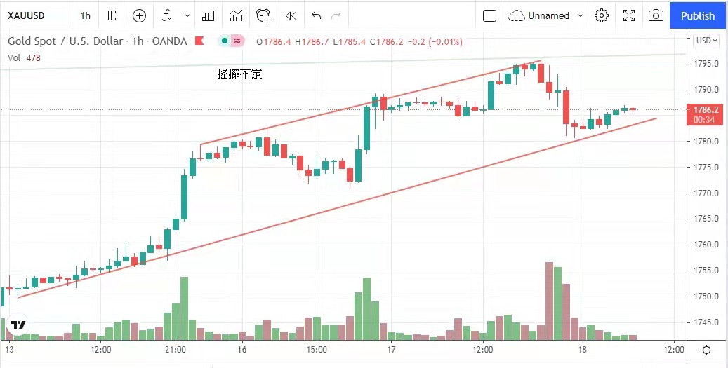 鲍威尔发言表示称不确定变种病毒对经济复苏的影响,而美国新冠感染人数快速增加,昨晚再有联储局官员发表言论,去支持压缩量化宽松政策,但是口风放软,说关键是何时实行。市场在等待明日零晨公布美国公开市场委员会7月份会议纪要,但美联储官员对减债的态度摇摆不定,大家可以参考早一天公布的澳洲央行的记录,是否能作攻玉之石。