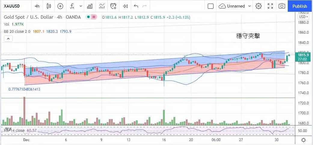 新变种病毒Omicron全球肆虐,疫情是否得以控制成关键。金市亦重复早日走势,金价跌穿1800美元后即现支持,显示此支持位对多头甚为重要,