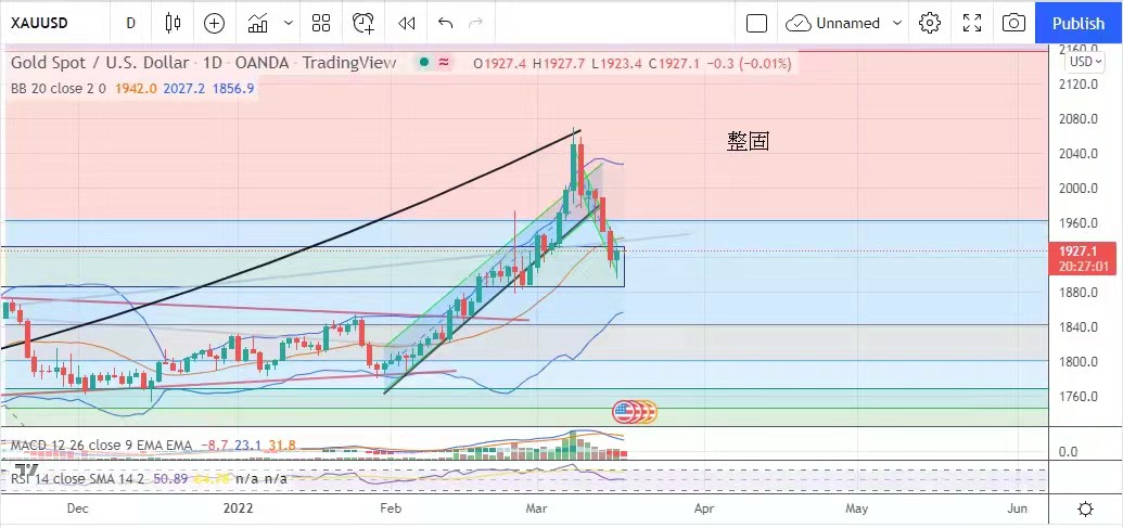 敢进取,待联储局公布加息2.5%后,金市出现戏剧性变化,金价骤跌20美元至日低的1895.1美元,之后倒升,金价最高见1929.6美元,最低见1927.4美元,升9.7美元。