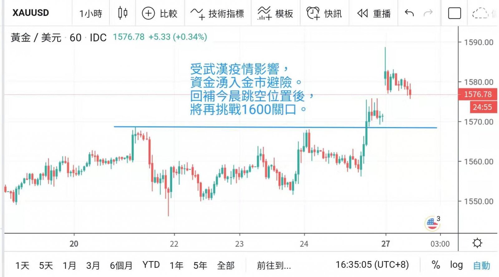 另一方面,武汉疫情未见受控,自上周发现疫情扩散至美国及香港等环球金融中心,