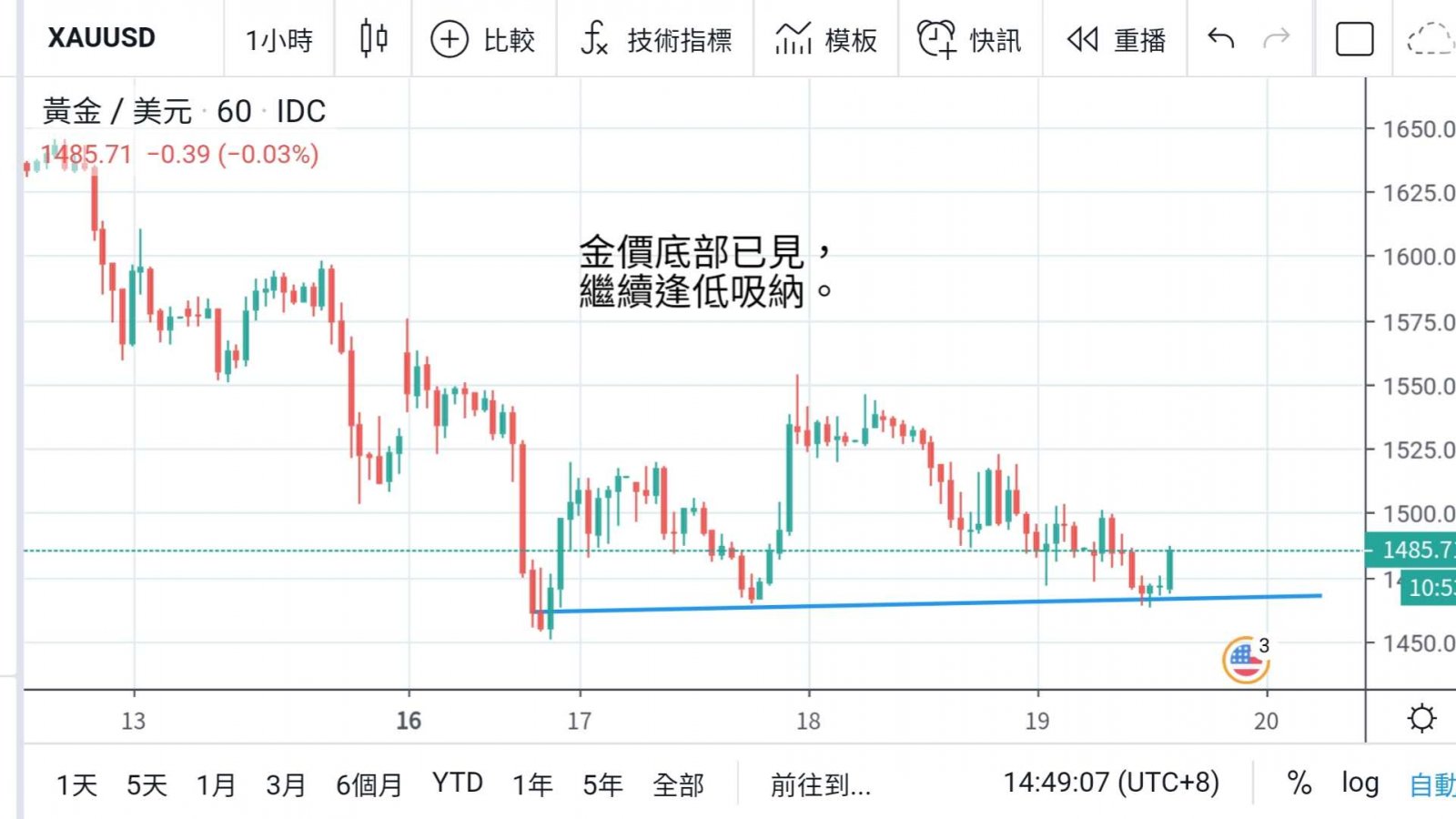 相信再破低機會不高,但美元上升,亦難令金價從此大幅向上,技術上金價需時於1500下方整固,有望逐級靠穩,
