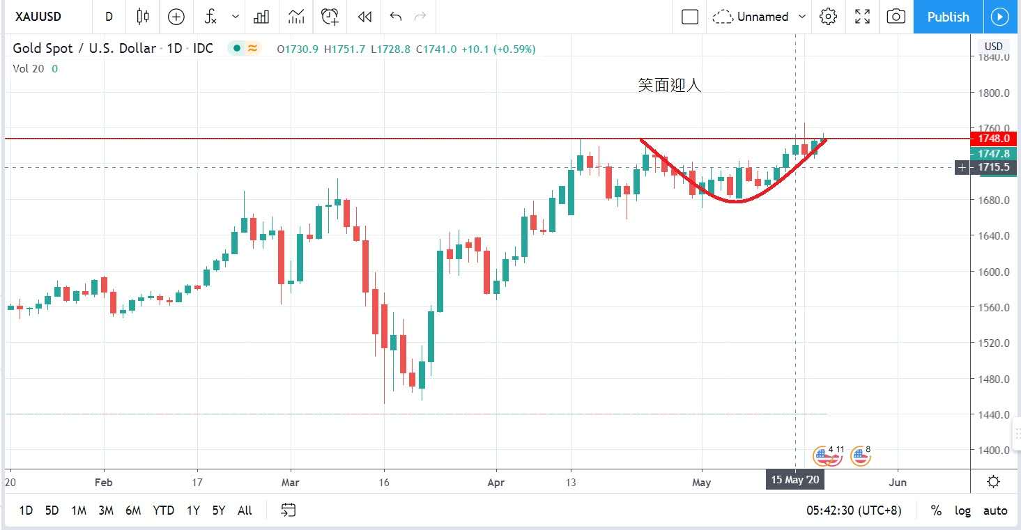 不過市場對於經濟復蘇的希望增強,風險偏好有所改善,限制了金價升幅,在美市時段收1748。而亦如昨天所言1748四月所創的阻力位,黃金似在此位置鞏固,等待下一波爆發。