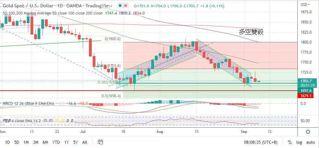 金市昨日反覆,形成多空雙殺!金價昨日開市高見1727美元,但無以為繼,雖然頂住1700美元收市,但走勢認真不