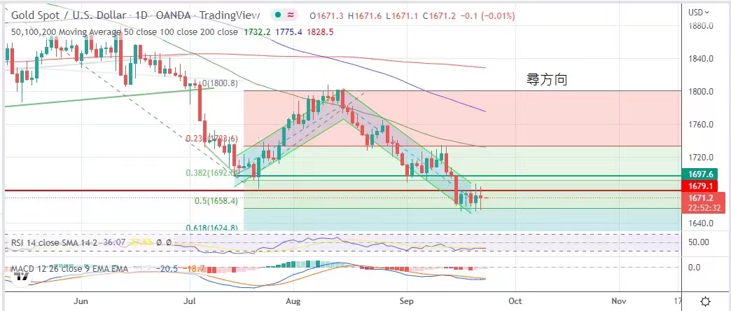 不果,逐漸鞏固該位置底頂倒置的強度;然而1658美元亦沒有跌穿,承托亦強,考慮美元仍處於強勢,仍是趁高空