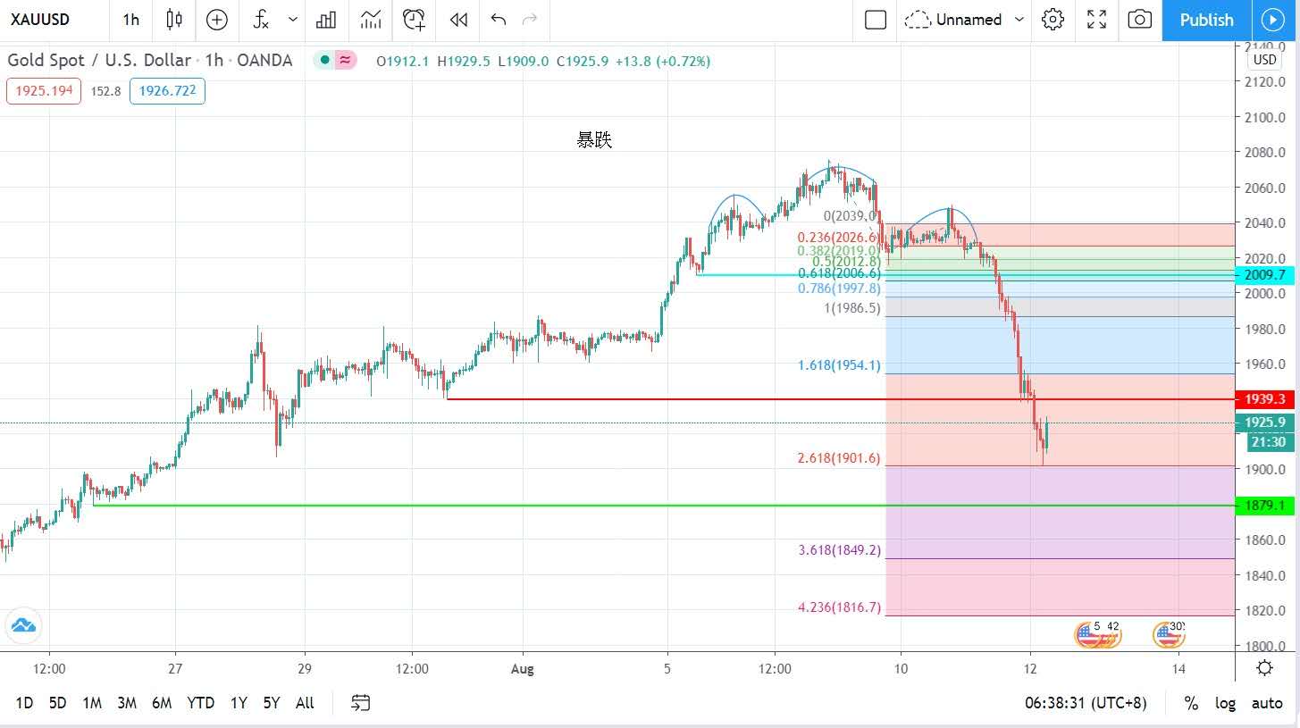 最高峰時在8月7日所創的歷史高位每盎司2075美元,已預期會有調整,而走勢上更出現大型頭肩頂,引申一波又一波的跌浪,昨日保住1900水平,