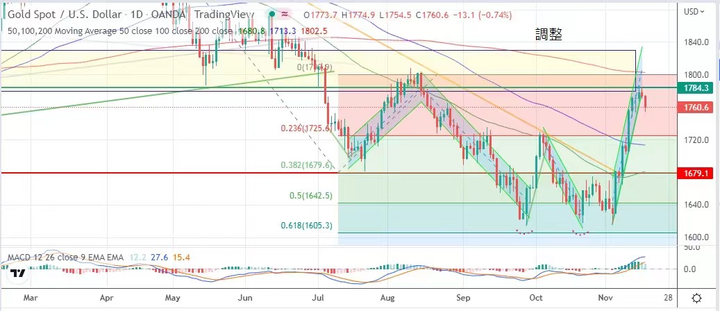 低收,金價最低見1754.5美元,最高息1774.9美元,最後以1760.6美元收市,跌13.1美元。