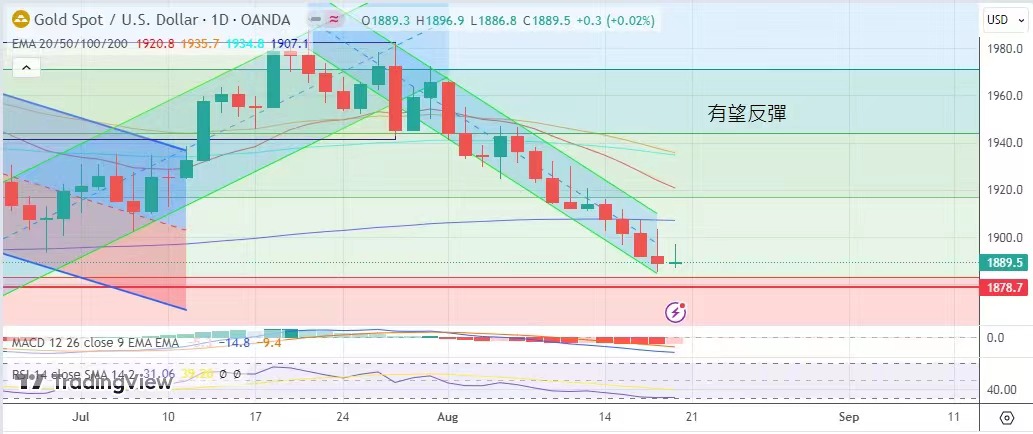 持議波幅於1884美元至1901美元。