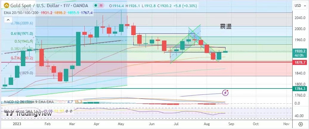 數據足以影響聯儲局加息的速度。金市震盪上行,金價最高見1926.1美元,最低見1912.8美元,收於1920.1