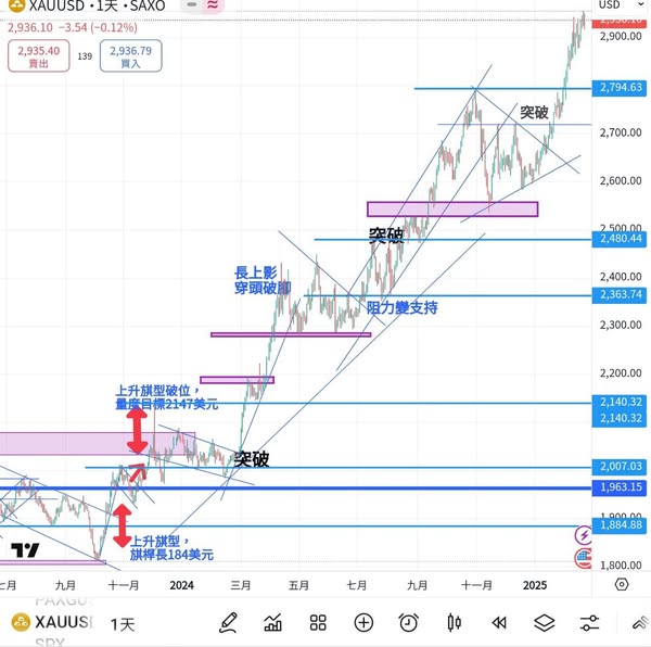 上週經濟數據不多,儘管美聯儲有意用更長時間維持高息,但亦對金價損害不大。金價週中後維持於2900上方運行,雖然未能攻克2950上方,但回吐幅度亦不大,保持大漲小回走勢。