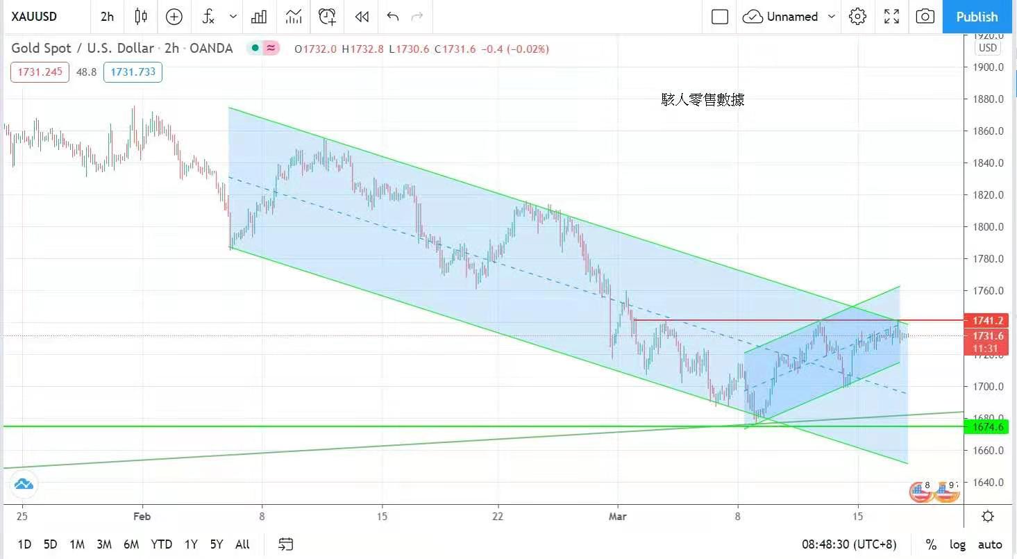 黃金在亞市時段仍將會窄幅盤整。維持建議波幅在1720至1740美元之間。