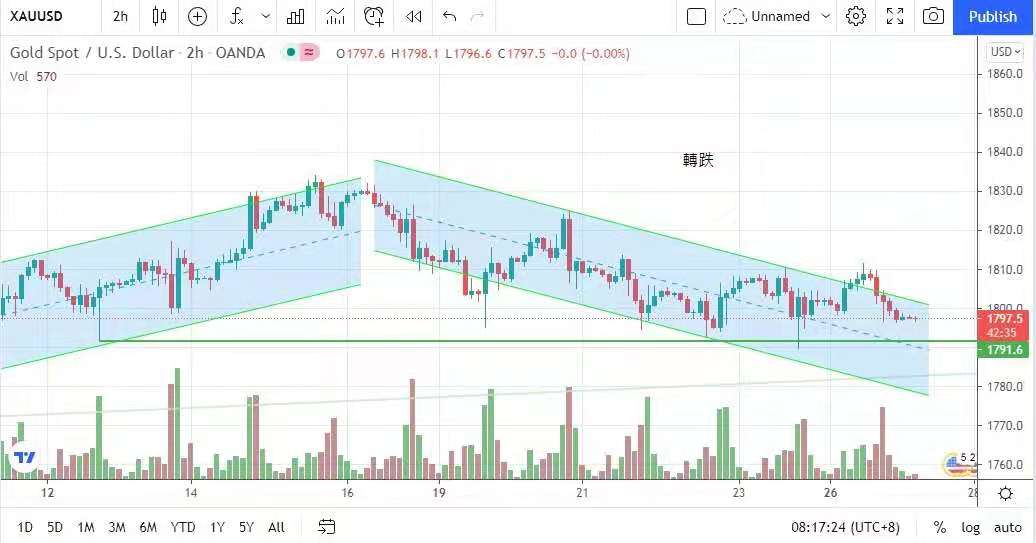 金市昨日高開低收,港股崩盤帶動整個亞洲股市下跌,金價早段因避險需求受支持,最高升至1812美元,但到了美市時段,美國十年期國債孳息率上升剎停了金市升勢,金價轉跌,最低見1796美元,但投資者仍觀望美聯儲於周三凌晨2時宣佈議息結果,限制了金價跌幅,最終以1798美元收市,跌4美元。