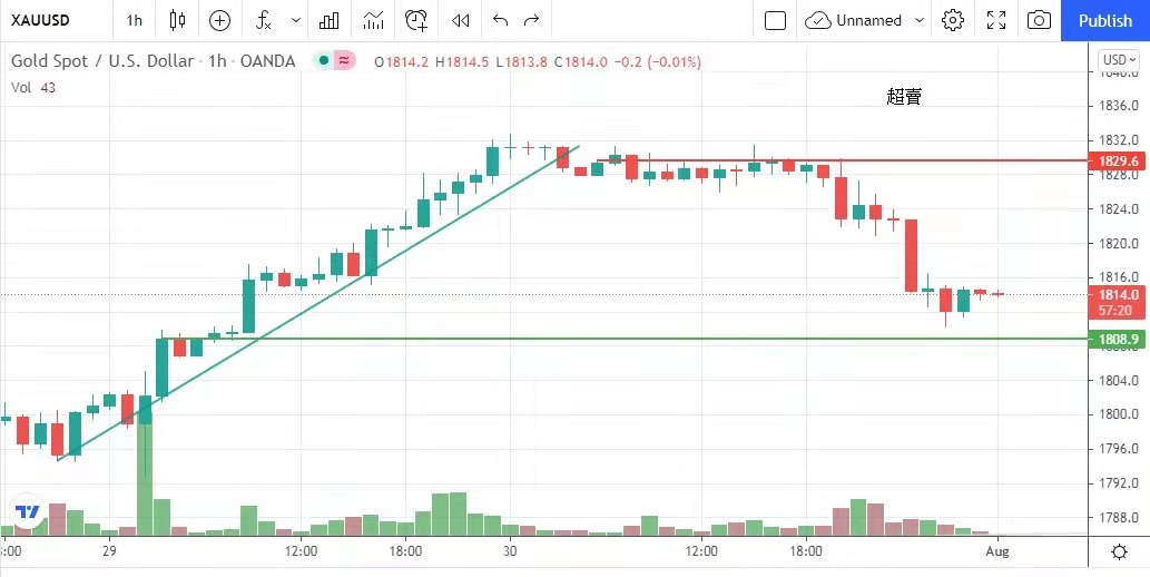 美聯儲放鴿,表示病毒仍威脅美國經濟,還沒有任何縮減買債時間表。言論助長金價上升,金價曾衝高至1833美元。週五美國公布核心個人消費支出價格指數,數字出現倒退,金價回調,金價在週五回吐星期四大部分升幅,最終以1814美元報收,跌了14美元,以一星期計,則上升了12美元。