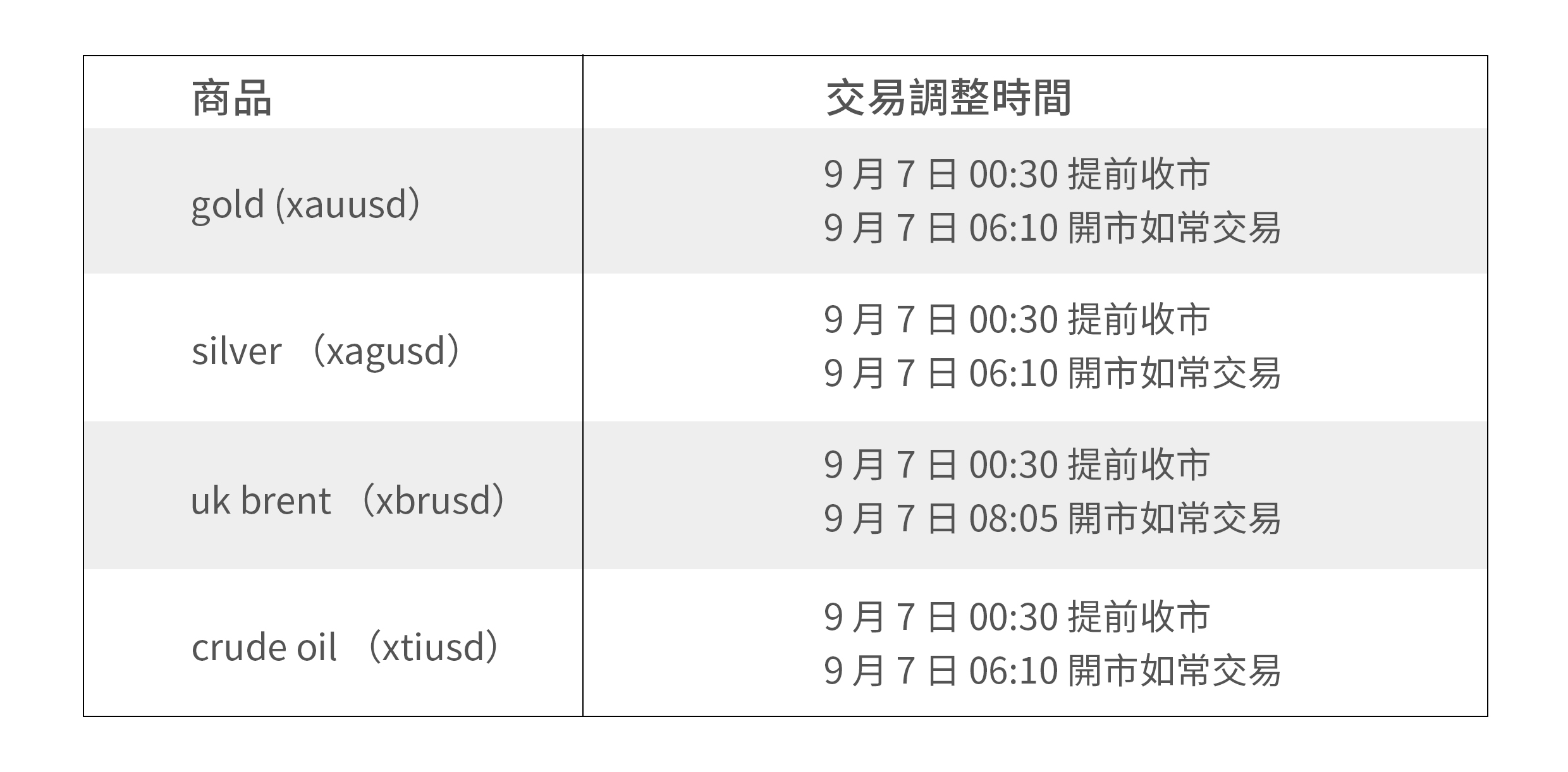 分商品交易時間將有所變動,以下時間均為北京時間(GMT+8):