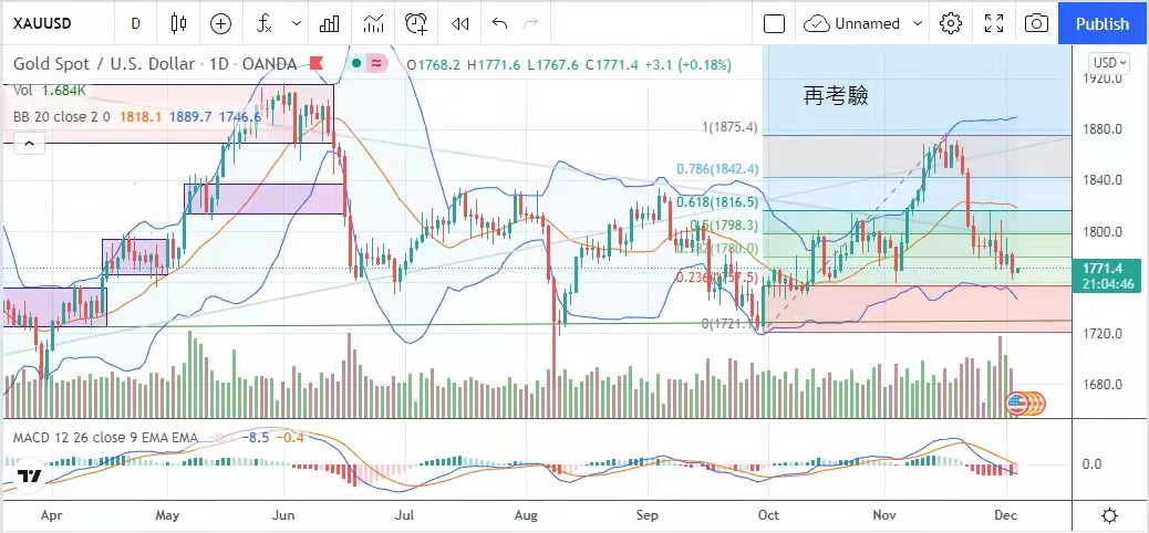 國債孳息率曾反彈至1.5%水平,加上上周初請失業金人數保持在有疫情以來低位,提振美元,美元指數重奪96點關口,金價明顯受壓,曾見日低的1762美元,