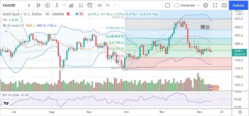 使美聯儲更有信心地加快縮減月度債券購買計劃的步伐,並比預期更早收緊貨幣政策。美元指數上升,金價受壓下跌,金價最高升至1787.7美元,金價最低見1773.3
