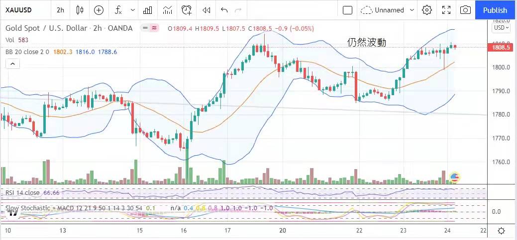 亦有利黃金的升值。金價連升兩周,在新年前夕並沒有重要數據情況下,料將窄幅波動。今日建議波幅1804美元至1815美元。