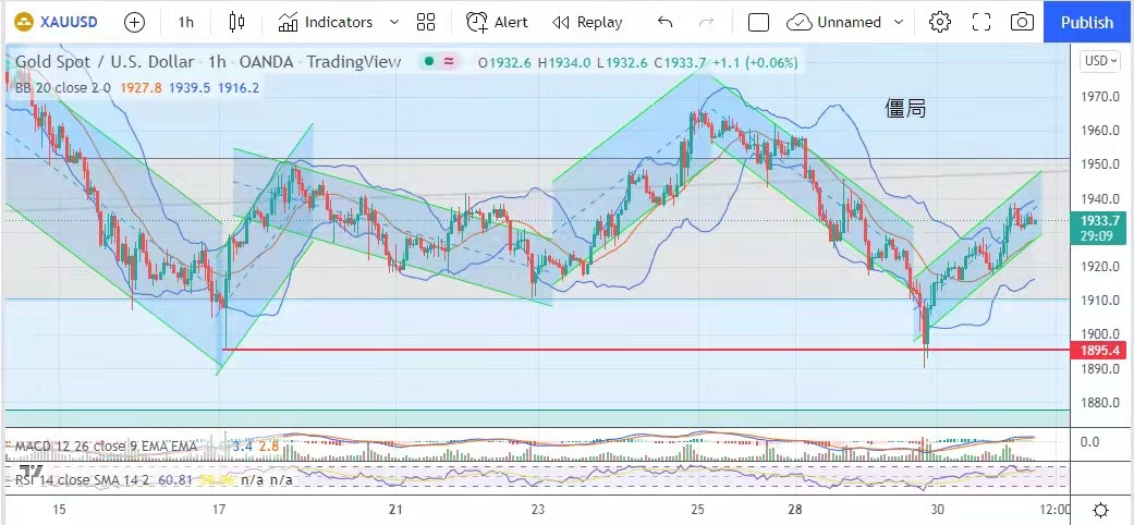 預期,但顯示美國通過脹仍持續上升中,對金市乃屬於好消息,但短期在1950美元仍有阻力。今日建議波幅1922美元至1939美元。要留意在今晚的